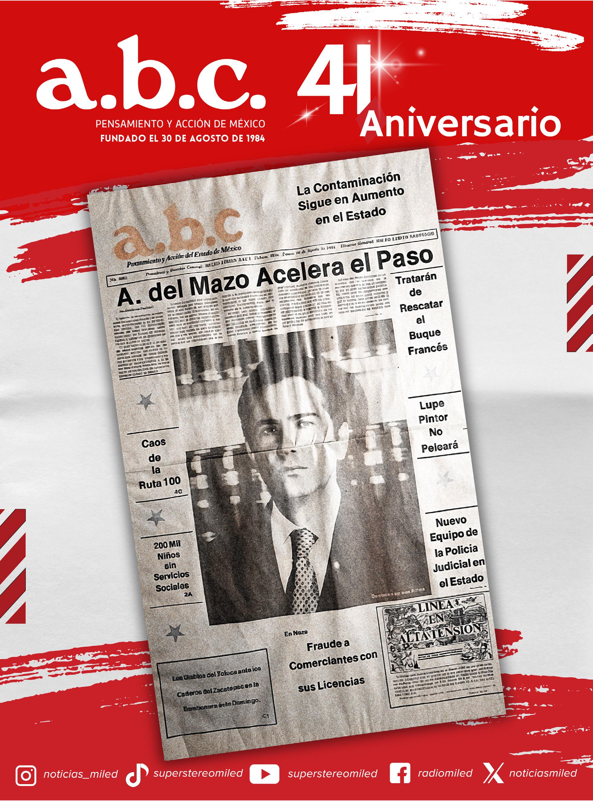ABC DE MÉXICO edición matutina diaria. Se edita en su propia planta de Impresiones MLS S.A. de C.V. en Lázaro Manuel Muñoz No. 106 Col. Altamirano. Toluca de Lerdo, Méx. C.P. 50130. Teléfonos: 722 2179880 y 722 2179646. Fundado el 30 de Agosto de 1984. Se distribuye en la Ciudad de México e Interior del País. Certificado de Reserva de Derechos al uso Exclusivo del Título (Indautor) No. 04-2016122014510400-101. Certificado de Licitud de Título y Contenido No. 16052. Servicios informativos de las agencias Notimex, SUN, EFE, United Feature Syndicate, Inc. NY, United, AP. Oficinas y Salas de Redacción en Nayarit No. 88 Col. Roma, Alcaldía Cuauhtémoc, Ciudad de México. C.P. 06760. Tel. 55644070. Precio del Ejemplar $5 pesos. Números atrasados el doble. Asociado a AIPE (Asociación Internacional de Prensa). Distribuido por la Unión de Expendedores y Voceadores de los Periódicos de México, A.C. Los firmantes son responsables de sus artículos. Se prohibe la reproducción total o parcial del contenido de esta edición. Dirección en Internet www.miled.com