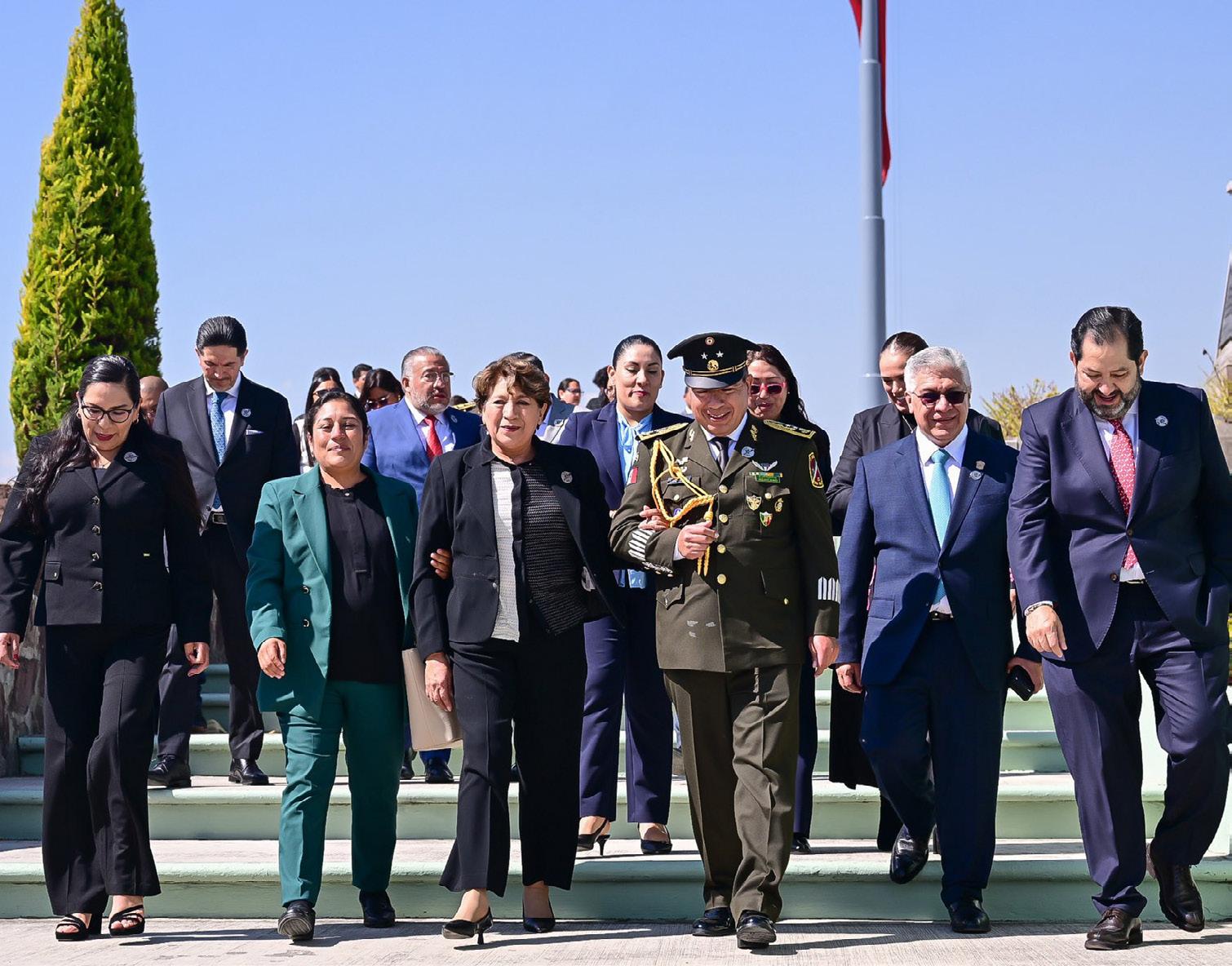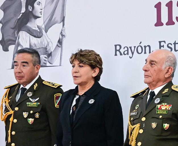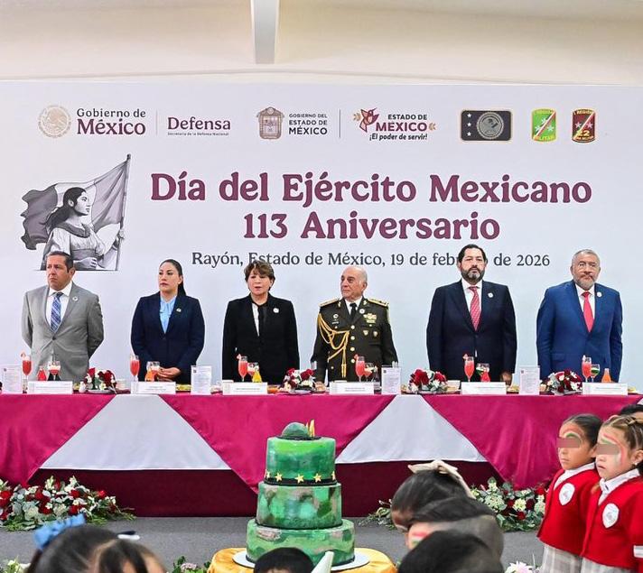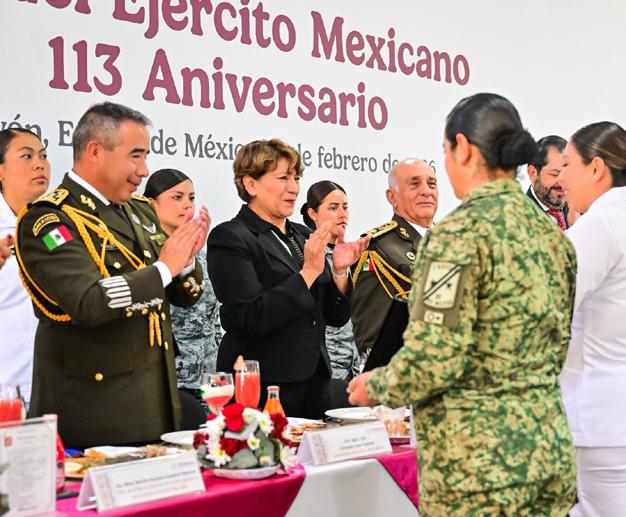 La Gobernadora del Estado de México, Delfina Gómez Álvarez, asistió a la ceremonia conmemorativa del 113 Aniversario por el Día del Ejército Mexicano en las instalaciones de la 22/a Zona Militar en el municipio de Rayón, donde entregó reconocimientos a tres mujeres integrantes de las Fuerzas Armadas. El General de Brigada de Estado Mayor