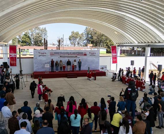 En beneficio de decenas de niñas y niños de San Pablo Autopan, el alcalde Ricardo Moreno entregó la construcción del arcotecho del Jardín de Niños Profesor Luis Camarena González. El Presidente Municipal explicó que todas las techumbres construidas son para las delegaciones alejadas del centro de la ciudad, como parte de la justicia social que impulsa la administración, a fin de dignificar las condiciones de los inmuebles y las actividades recreativas, deportivas y culturales de forma segura. Por su parte, el director general de Obra Pública, Maximino Bueno, explicó que los trabajos consistieron en la demolición a mano del piso de 10 cm de espesor de concreto, construcción de zapata aislada, armado sencillo con acero de refuerzo, construcción de columnas, suministro y colocación de arcotecho 100% engargolable fabricado en lámina pintro calibre 22 de 512.56 m2 así como suministro e instalación de bajada de aguas pluviales, entre otros. Ante la presencia del edil y de la diputada, Ana Yurixi Leyva, la directora del preescolar, Ruby Gómez, agradeció ser escuchados, debido a que por muchos años pidieron e insistieron sobre una estructura para proteger a la comunidad estudiantil de las inclemencias del clima cuando realizan sus actividades deportivas, culturales y cívicas.