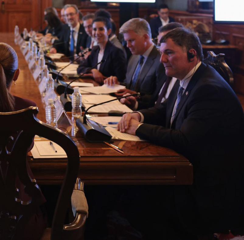 La presidenta mexicana recibe en Palacio Nacional a la comitiva comercial de uno de sus socios en el TMEC
