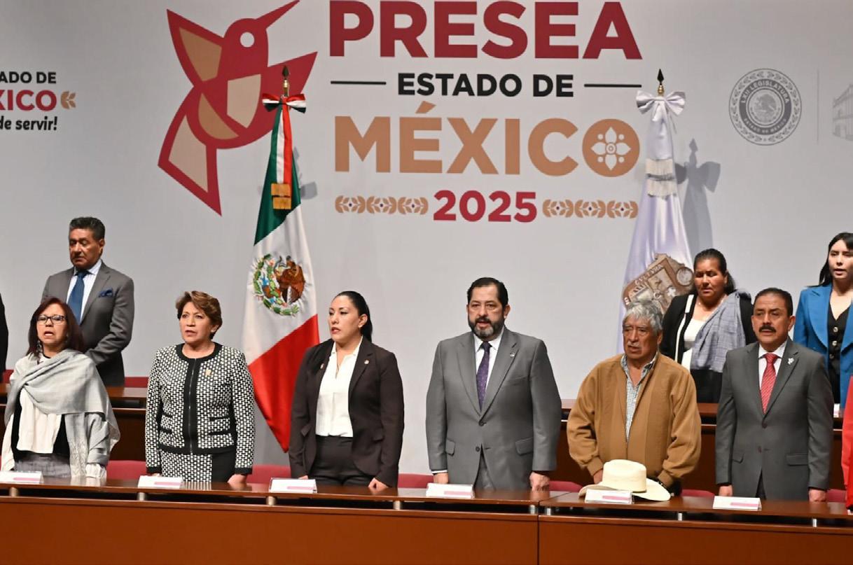 El diputado José Francisco Vázquez Rodríguez, presidente de la Junta de Coordinación Política, y la diputada Martha Azucena Camacho Reynoso, presidenta de la Directiva de la LXII Legislatura mexiquense, participaron en la ‘Ceremonia del 202 Aniversario del Estado de México y Entrega de la Presea 2025’, evento encabezado por la gobernadora Delfina Gómez Álvarez. A la ceremonia, realizada en Texcoco, acudieron también Leticia Ramírez Amaya, coordinadora general de Asuntos Intergubernamentales y Participación Social del Gobierno Federal, y representante de la presidenta Claudia Sheinbaum Pardo; Héctor Macedo García, titular del Poder Judicial; y Horacio Duarte Olivares, secretario general de Gobierno,