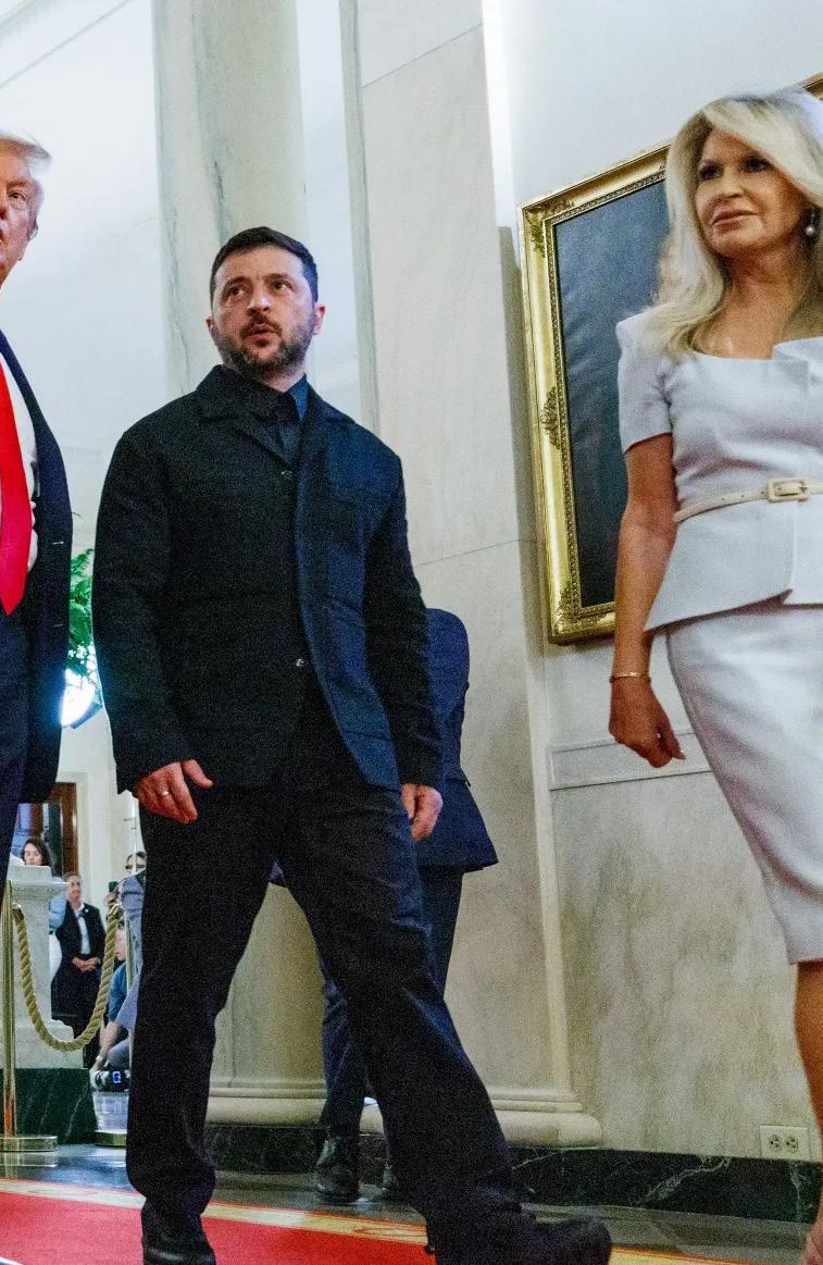 Trump se fijó en el aspecto más decoroso de Zelensky. Este abandonó su tradicional atuendo de guerra y vistió una chaqueta oscura y formal con cuello.