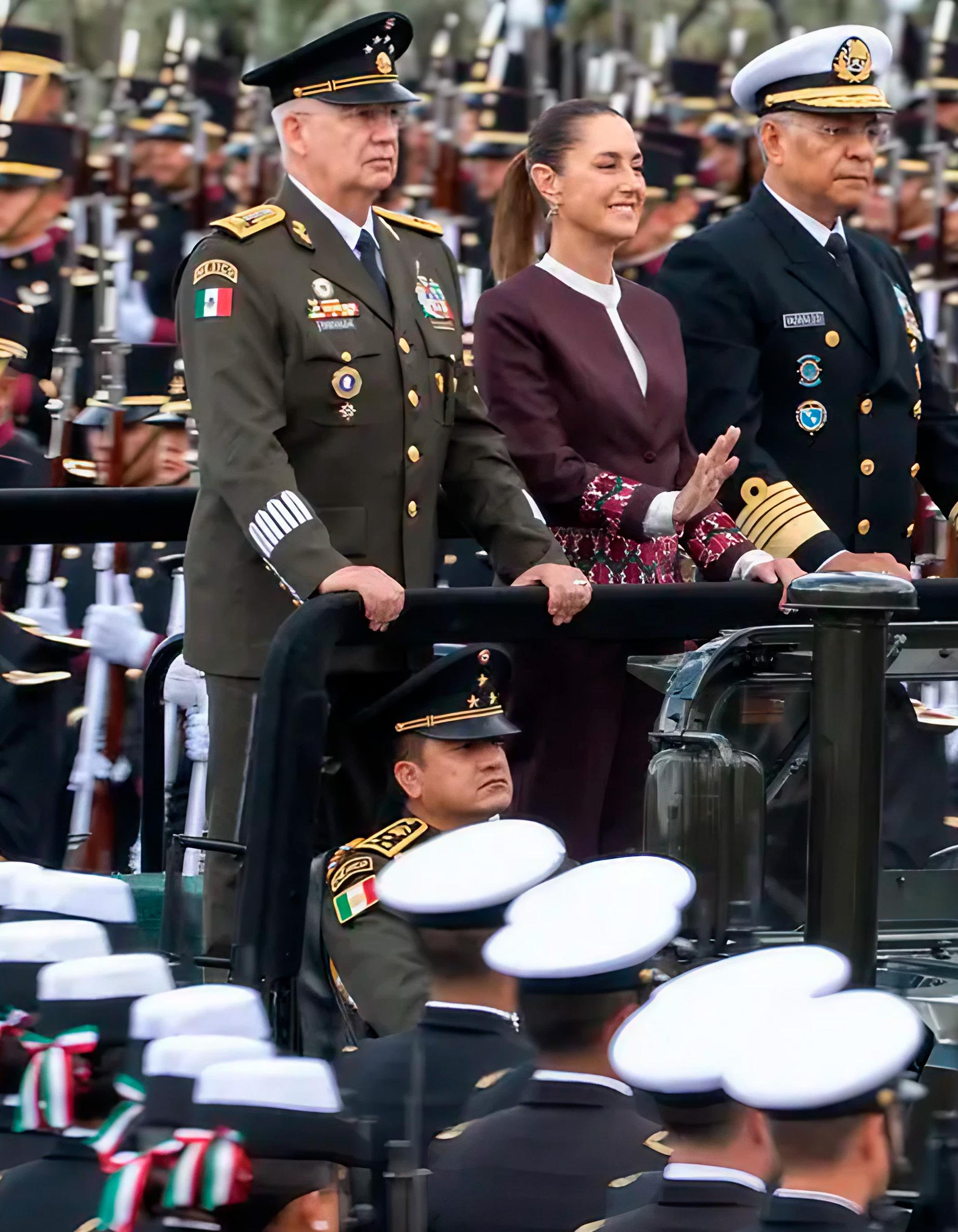 La mandataria imprimió un sello que entrelazó feminismo, inclusión social, austeridad y soberanía. Desde el color morado de su vestimenta, asociado con la lucha feminista, hasta la escolta militar conformada únicamente por mujeres cadetes, la ceremonia proyectó una voluntad política clara: visibilizar el papel de las mujeres en espacios históricamente masculinos. La arenga desde el balcón del Palacio Nacional incluyó a los héroes tradicionales, pero también a figuras como Leona Vicario, Gertrudis Bocanegra y Josefa Ortiz, además de las “heroínas anónimas”, los migrantes y las mujeres indígenas. Con ello, Sheinbaum amplió el horizonte del relato patrio hacia sectores tradicionalmente relegados.