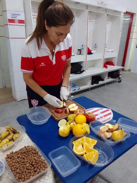 Silvia Fredes preparando los alimentos para los deportistas en el Club UnióndeSantaFe