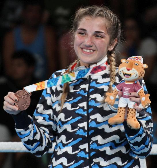 Victoria Oriana Saputo mostrando la medalla obtenida en los Juegos Olímpicos Juveniles de Buenos Aires 2018 Foto: Wikipedia