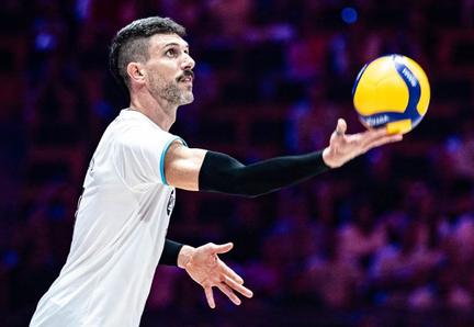 Lodz, Polonia 28/06/2024 Facundo Conte realizando un saque en un partido contra Eslovenia en la Nations League de Vóley Foto: Instagram personal de FacundoConte