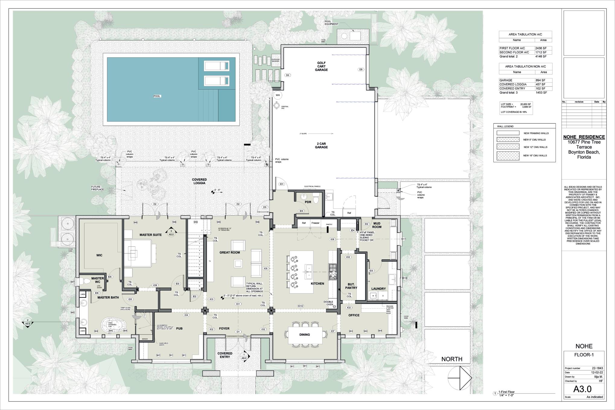 The residential project, approximately 9,091 sf, is located in Parkland, Florida, and is conceived as a single-story home that prioritizes an open and harmonious space. With 6 bedrooms, the design integrates the areas of kitchen, dining, and family room in a fluid open concept, allowing natural circulation and a continuous spatial experience. The entire development was modeled in Revit, achieving a high level of detail that facilitates visualizing carpentry, furniture, and lighting, and allows precise characterization of each space. Through parametric tools, furniture elements are incorporated to provide customization and efficiency in the design.