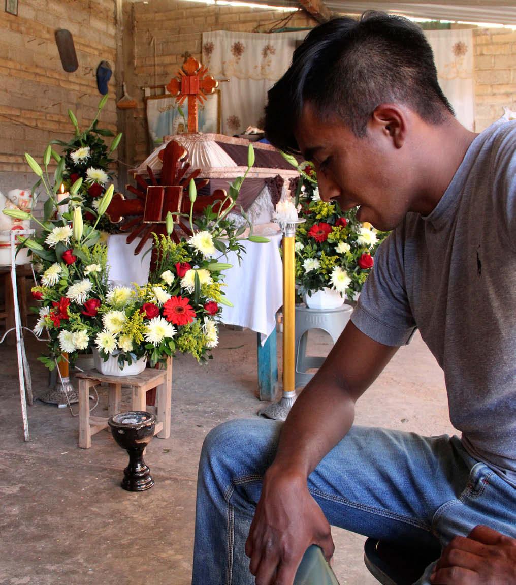 El día de la colocación se requiere que los danzantes hagan otro ritual y coloquen una ofrenda al pie de palo. La ofrenda contiene los principales ingredientes para preparar un mole de guajolote: chile ancho, jitomate, chipotle, canela, clavo, además de velas, flores y aguardiente. Asimismo se coloca en los cuatro puntos cardinales palmas en forma de cruz (Kouxiuit).