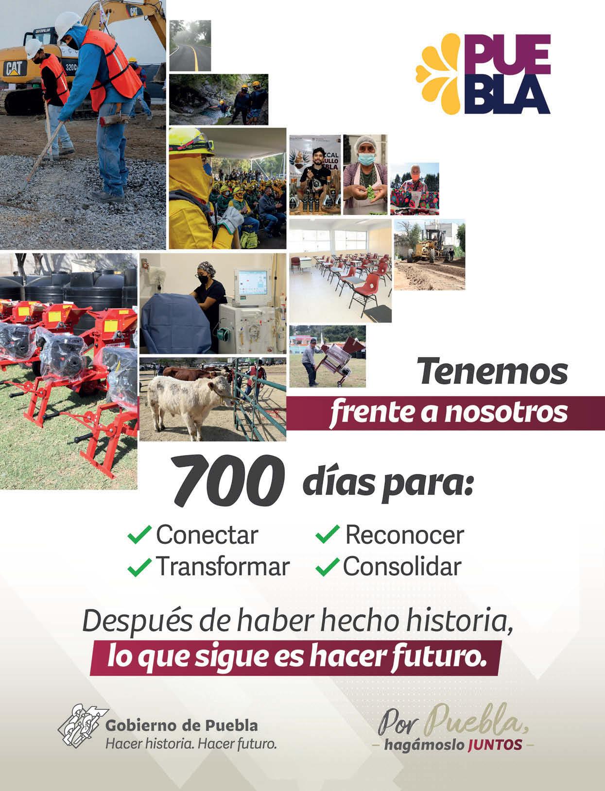 M Puebla, suplemento político, económico y empresarial, febrero 2023. Número 32 Publicación mensual. Editor Responsable: Miguel Ángel Vargas. Número de certificado de reserva otorgado por el Instituto Nacional del Derecho de Autor: en trámite. Número de certificado de licitud de título y contenido: en trámite. Domicilio de la publicación: Milenio Diario S.A. de C.V., Avenida 31 Oriente 616, Local 5. Colonia Anzures, Puebla, Puebla. CP. 72530. Imprenta: Avenida Eugenio Garza Sada Sur, No. 2245, Col. Roma, C.P. 64700, Monterrey, N.L. Distribución: unión de expendedores y voceadores de los periódicos de México A.C. con domicilio en Guerrero no. 50 Col. Guerrero C.P., 06350 Alcaldía Cuauhtémoc, Ciudad de México. Es independiente en su línea de pensamiento y no acepta necesariamente como suyas las ideas de artículos firmados. Queda prohibido la reproducción total o parcial de la presente edición, misma que se encuentra registrada a nombre de Milenio Diario, S.A. de C.V., Derechos reservados.