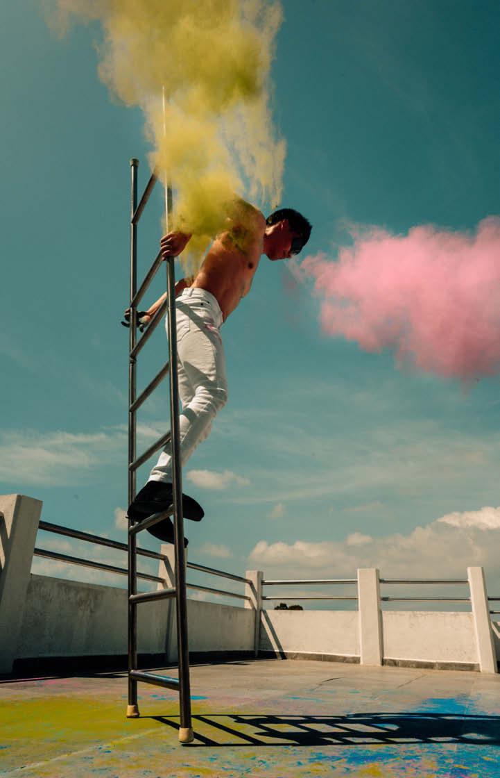 cialidad es el acto de escalera libre: “Con una escalera, en lugar de recargarla en la pared, la mantengo en equilibrio y sobre ella hago malabares, acrobacia y parada de manos básicamente”.