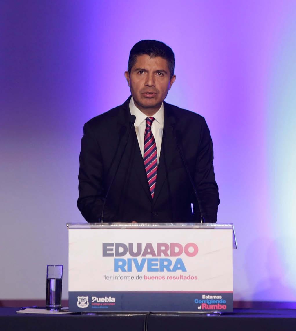 El presidente municipal de la capital poblana, Eduardo Rivera Pérez, presentó su primer informe de labores acompañado del gobernador Miguel Barbosa Huerta; el dirigente nacional del PAN, Marko Cortés ; el líder del PRD, Jesús Zambrano; el senador Santiago Creel, y otros líderes locales, migrantes y nacionales. El edil destacó que a un año de rendir protesta, la ciudad avanza por el camino correcto y está más fuerte, unida y mejor preparada para lo que venga.