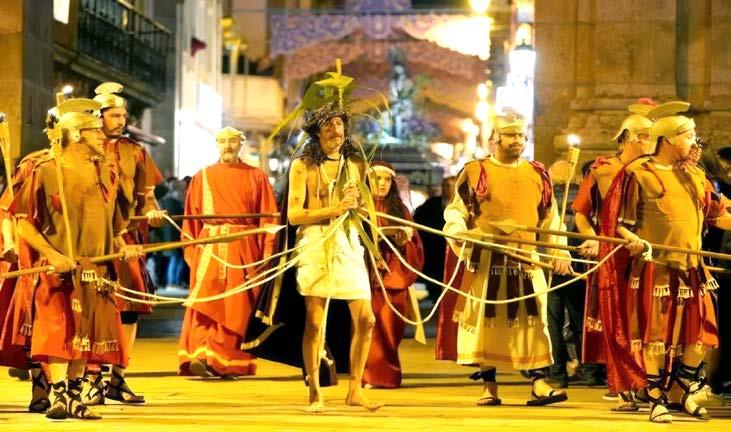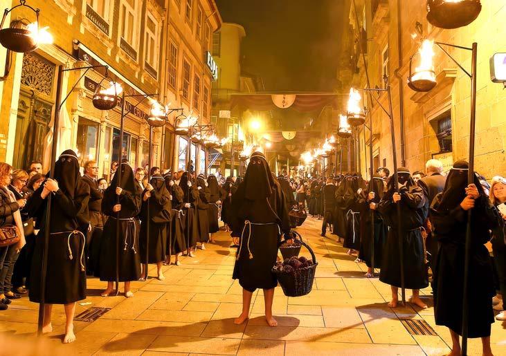 grandes procissões noturnas com centenas de figurantes e onde harmoniosamente se conjuga a liturgia e a religiosidade popular com antigas tradições. Desde a Procissão dos Passos, aos cortejos bíblicos, todas estas manifestações culturais envolvem os bracarenses e acolhem os forasteiros. São um verdadeiro postal bíblico. A Procissão do Senhor Ecce Homo em Braga acontece na Quinta-feira Santa com penitentes des-