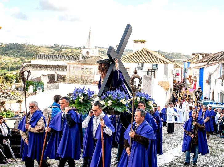 Em Óbidos, as celebrações da Semana Santa são das mais animadas de Portugal e duram duas semanas. À noite, há procissões com tochas e, durante o dia, os úl-
