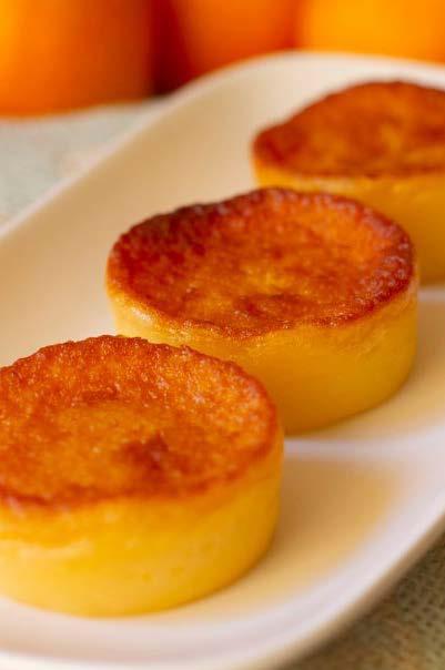 Num outro recipiente misturar a farinha com o açúcar, adicionar os ovos um por um, bater até ficar um creme macio, de seguida adicionar a raspa e o sumo da laranja e o leite em fio, mexer sempre. Untar as formas e encher com a massa. Levar ao forno a cozer durante 30 minutos.