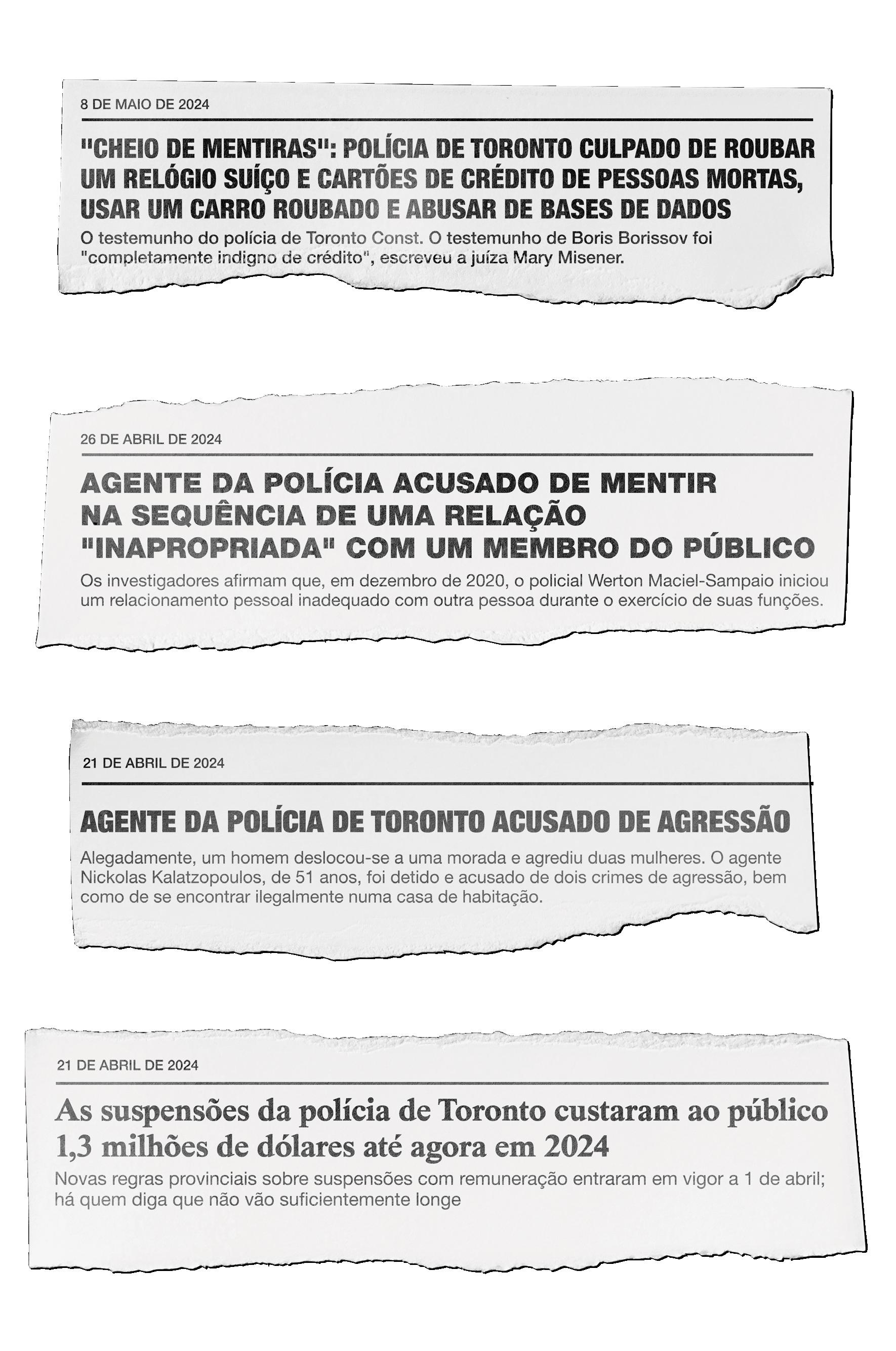 Entre janeiro de 2013 e abril de 2024, 119 agentes do Serviço de Polícia de Toronto foram suspensos um total de 130 vezes - alguns mais do que uma vez. Todos receberam o seu salário integral, o que representa uma fatura total de 31 milhões de dólares para os contribuintes. A 9 de abril, pelo menos 31 agentes da polícia de Toronto ainda estavam suspensos, 69 voltaram ao trabalho, 12 demitiram-se, cinco foram despedidos e três