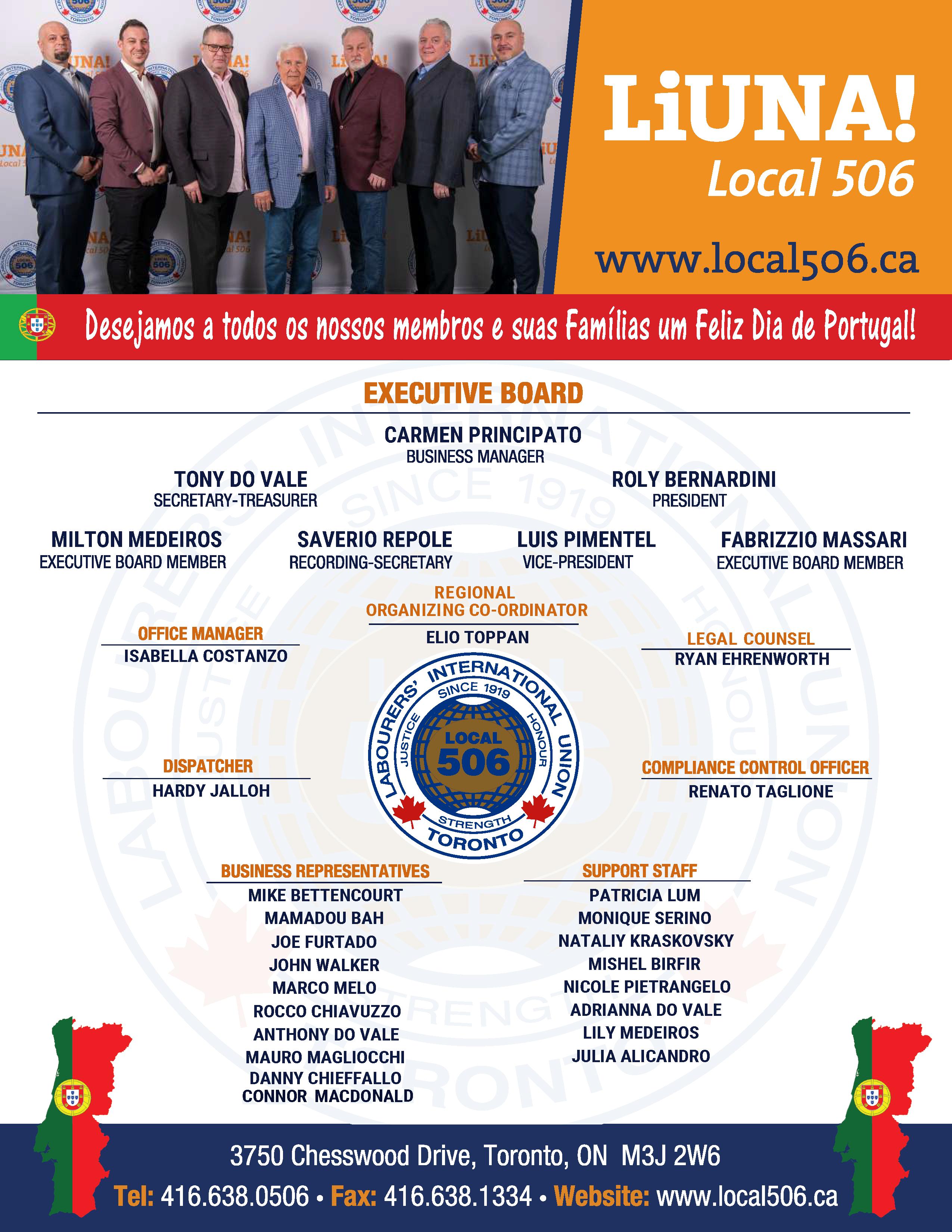 The executive borad of Local 506 have pleasure in inviting you to join us. Para mais informações (416) 638-1334