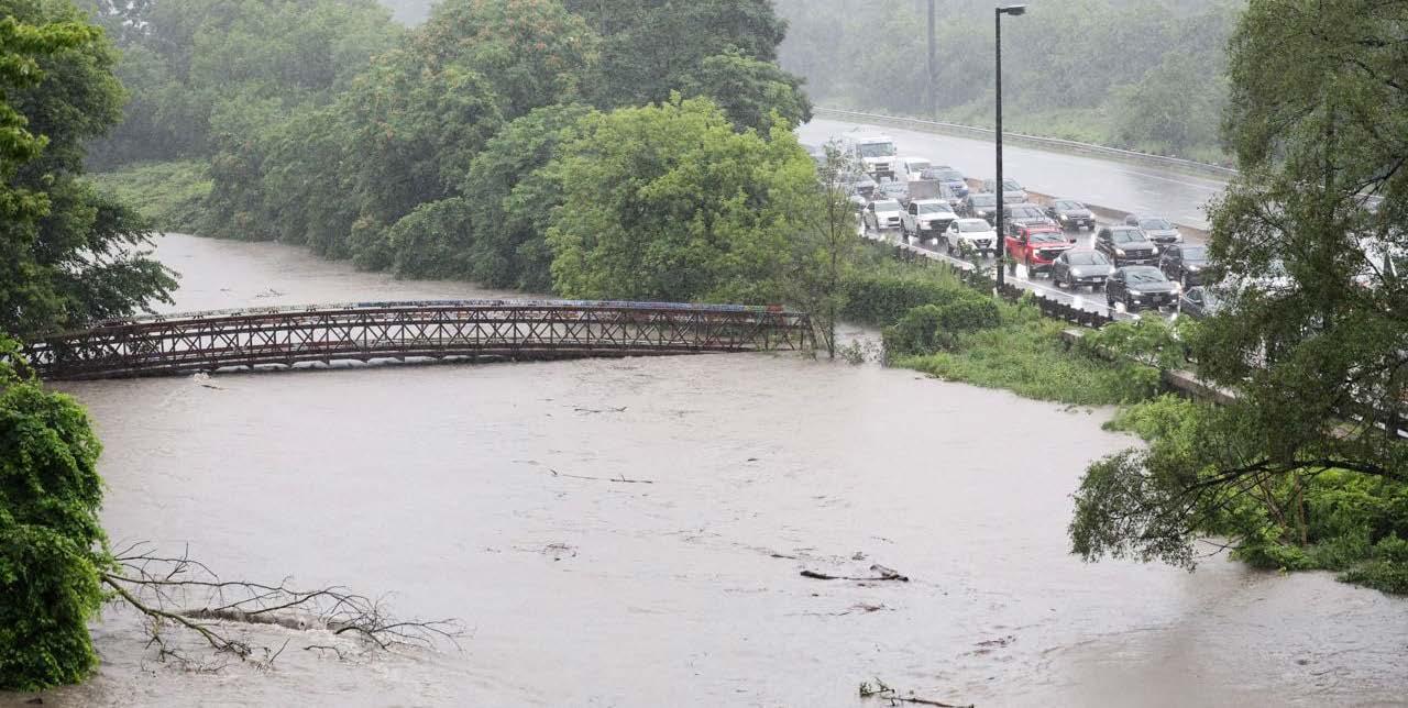 • Os funcionários da Câmara e o pessoal dos serviços de emergência fecharam rapidamente as estradas inundadas para garantir a segurança dos automobilistas.