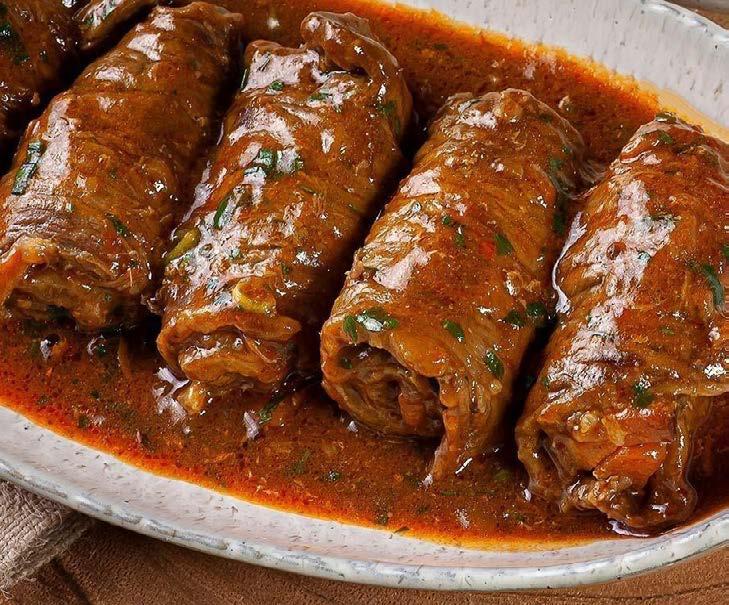 Temperar o peito com sal e pimenta, colocar o fiambre por cima do peito, colocar as fatias de queijo por cima do fiambre, colocar os ovos cozidos sem casca, ao lado colocar as cenouras e os grelos. Enrolar a carne e atar o rolo com o fio.