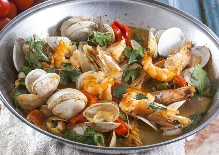 Cortar as cebolas em meias luas, as batatas as rodelas e os pimentos em juliana, cortar também os tomates em rodelas e esmagar os dentes de alhos. Partir os peixes em postas e temperar com sal e pimenta. Colocar o azeite na cataplana, colocar depois a cebola e os alhos um pouco de piripiri e a folha de louro e por cima colocar as batatas os pimentos e o tomate Temperar com sal e pimenta a salsa e colocar os peixes . Para finalizar regar com azeite, um pouco de manteiga, o vinho branco, a água e colocar ao lume durante 20 minutos. Depois colocar o marisco e deixar cozinhar mais 5 a 8 minutos. Quando estiver pronto levar a mesa. Bom apetite!