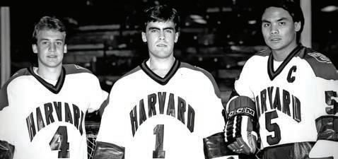 ↓ Um jovem Carney (ao centro) com o seu uniforme de hóquei de Harvard.