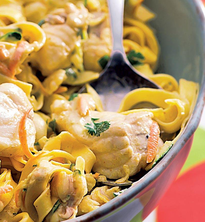 Cozer o tagliatelle com sal. Quando o tagliatelle estiver cozido adicionar ao tamboril, adicionar as natas e retificar temperos. Polvilhar com a salsa picada. Bom apetite!