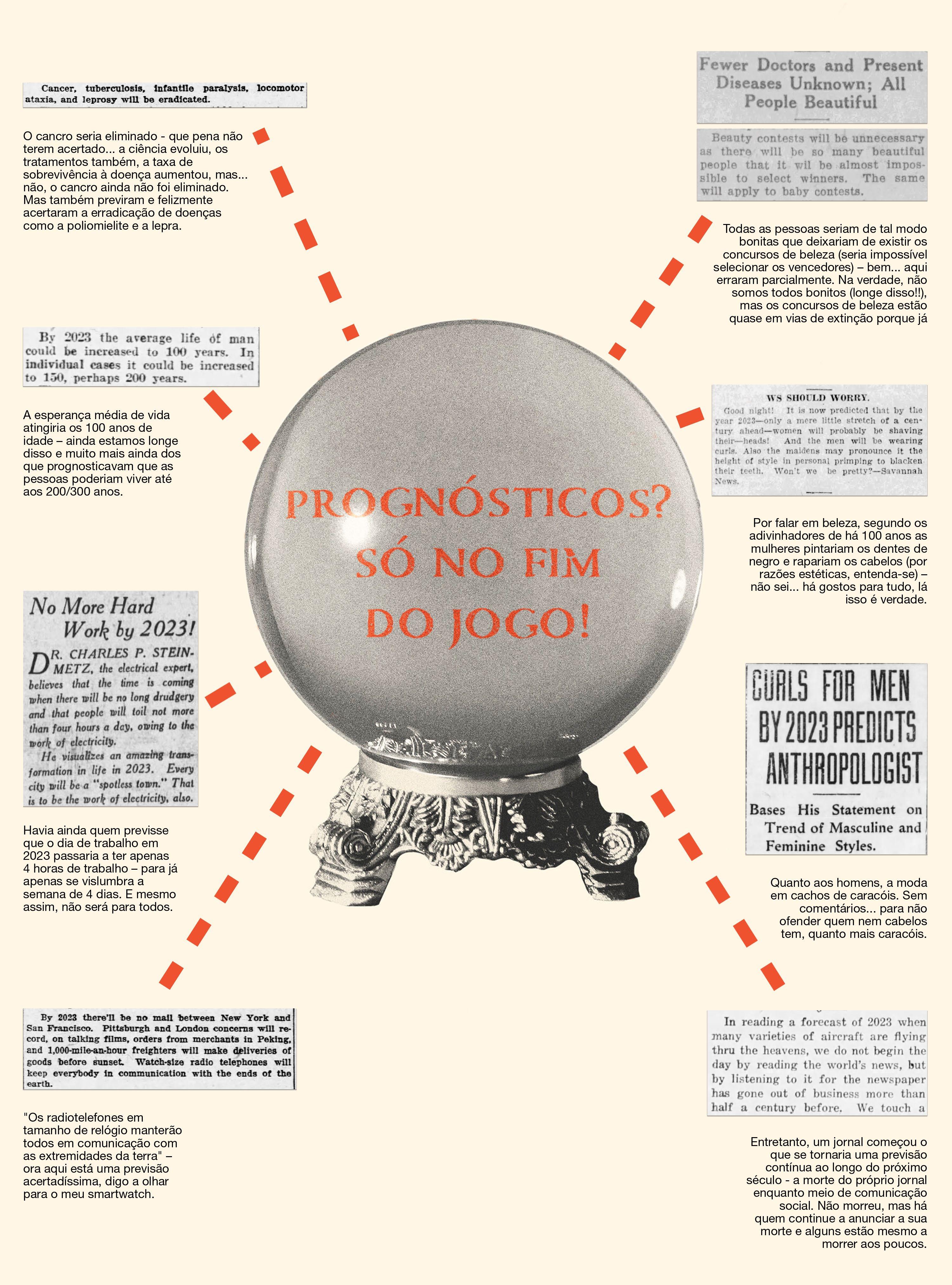 E se adivinhar o futuro próximo é já uma aventura, adivinhar como estará o mundo daqui por 100 anos poderia transformar-se numa deliciosa prosa de comédia para quem nos lesse em 2123. Não se assustem – nem vou tentar fazê-lo.