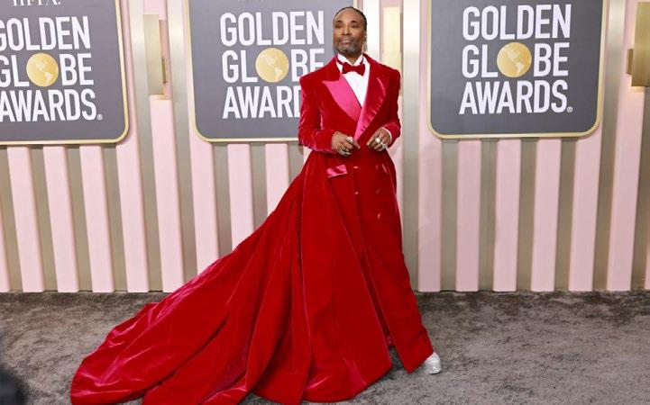 Sempre que assistimos a uma passadeira vermelha contamos com o glamour e irreverência de Billy Porter: e o ator, cantor e cineasta, que marcou presença na gala dos Globos de Ouro, em Los Angeles, voltou a destacar-se. Porter não desiludiu quem aguardava ansiosamente por descobrir qual seria o look escolhido: desta vez o artista de 53 anos optou por um visual que misturava um smoking com um vestido - a criação, toda em veludo e em tons de rosa, é assinada por Christian Siriano. De relembrar que na edição de 2019 dos Óscares Billy Porter também havia surpreendido com um modelo semelhante.