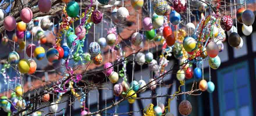 Os alemães decoram as suas árvores com ovos coloridos. Estas “Osterstrauch” (árvores da Páscoa) dão um toque colorido às ruas e jardins e têm também a função de anunciar a chegada da primavera.