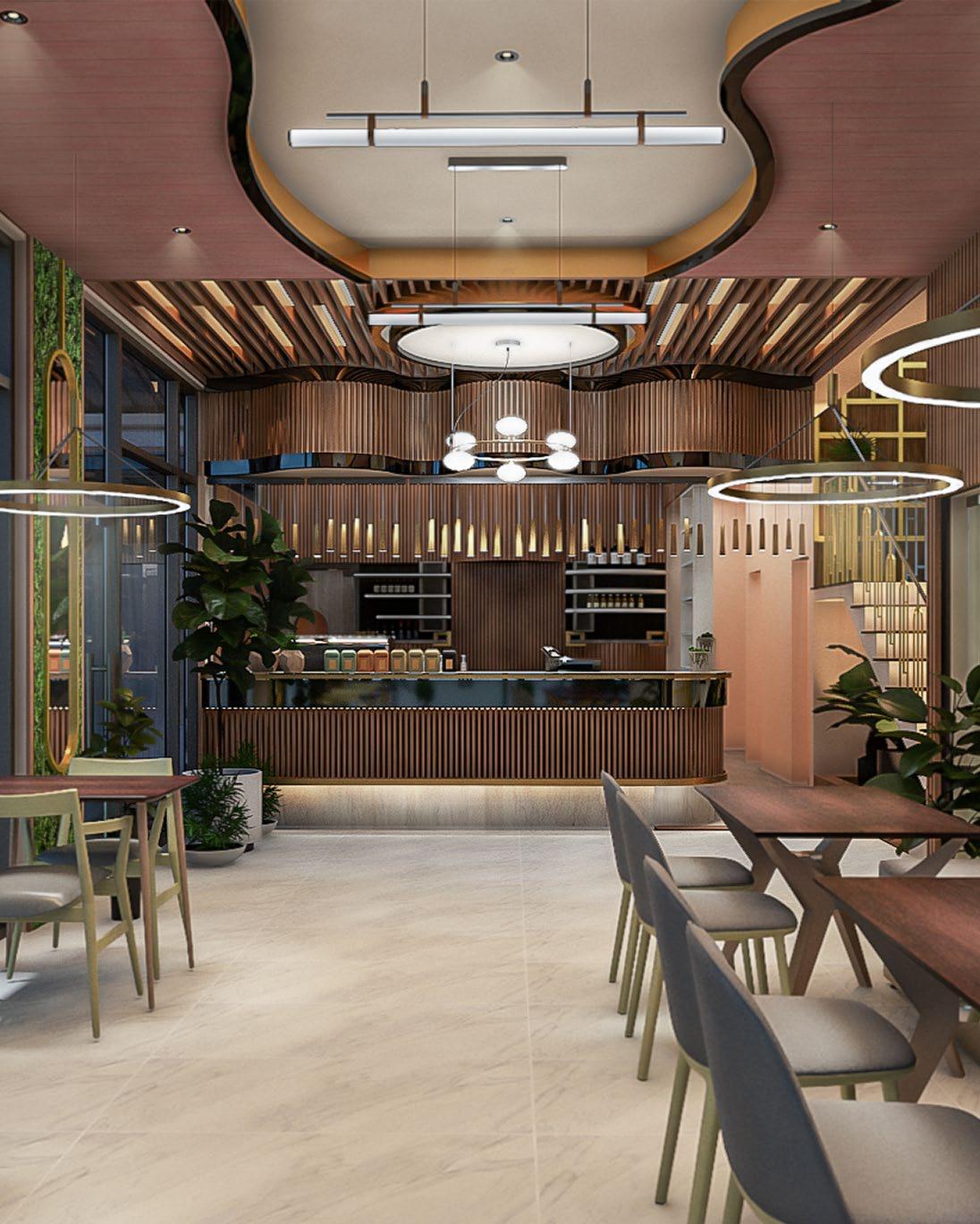 This café is a mix use project completed with minimarkets and car washes to support many visitor activities, visitors can wait for their vehicles to be cleaned while sipping fresh coffee from Mandala Wahyu Café, this café use a modern luxury concept with an elegant touch of wooden finishing