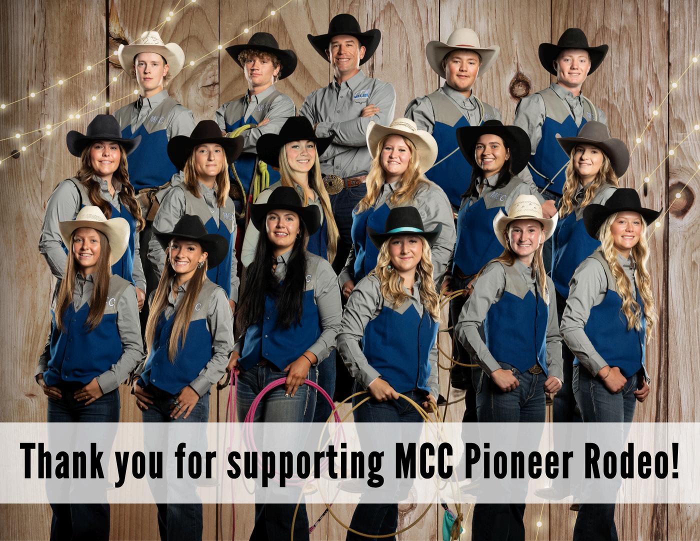 100% of the proceeds go to MCC Pioneer Rodeo scholarships.