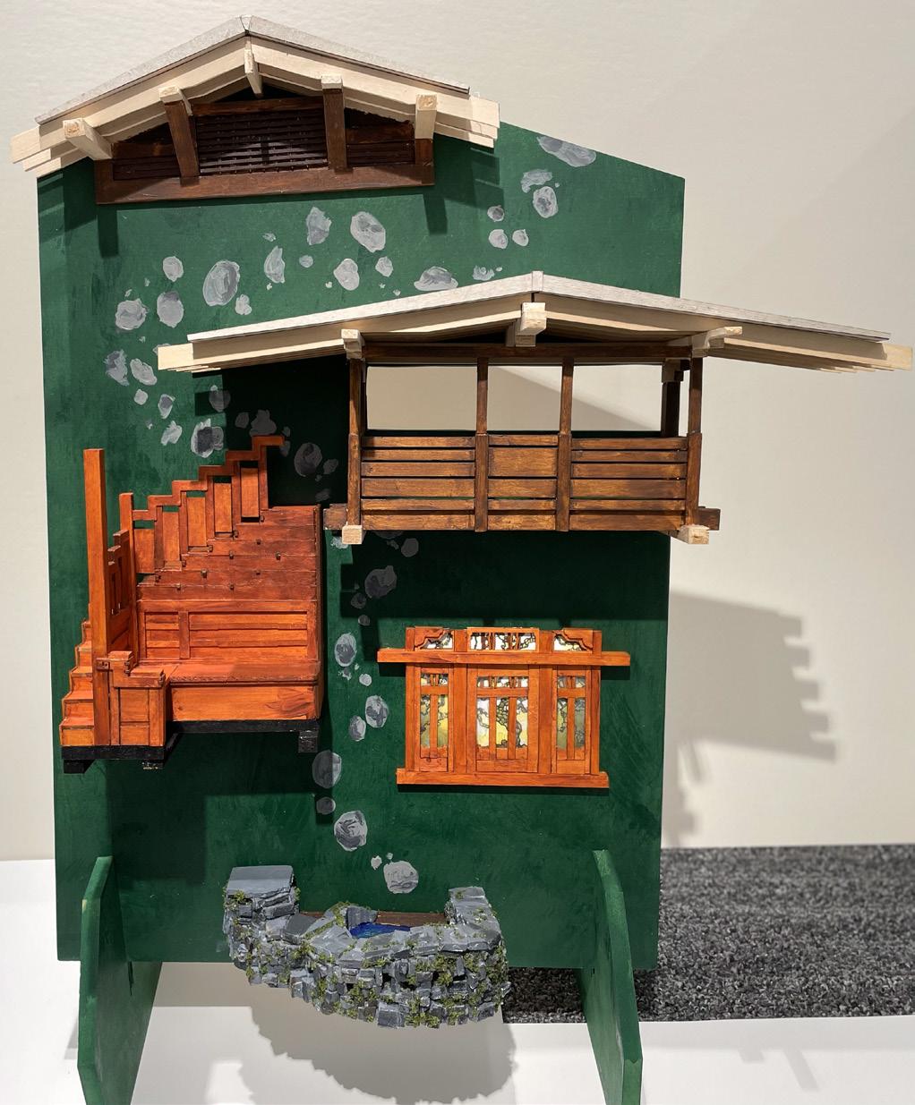 This project is a collection of hand-modelled fragments of the Greene & Greeme Gamble House. In this exercise I utilized a wide variety of techniques including laser cutting of basswood and acryllic, using a heated foam cutter, and several woodshop powertools (Bandsaw, disk sander, & compressed air brad nailer). I found that this project invited an exploration of the style of woodworking utilized in the origional Gamble House, as such I correlated my process directly. In this project I was able to use previous carpenty experience to properly achieve the correct construction of the two roof structures. Precutting notches into the structural joists to fit into the perpendicular beams, and layering two different sets of foundational bracing underneath the decking of the porch. A new process I encountered was in the stone walled patio fragment, wherein I created the base out of MDF and used a large variety of handcut foam bricks to create a solid impression that closely resembles the original prescedent.