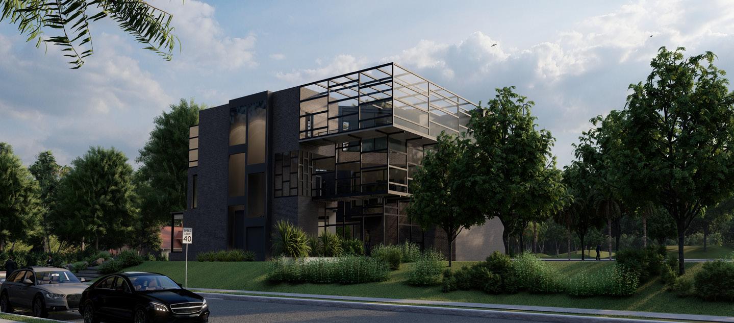 In this project, our goal was to add value to the site, while retaining the identity that already existed. This entailed finding a balance between the publicity of restaurant culture and the serenity desired in a place of residence. As the site exists at the crossroads between a major street and a large public park, we developed a route diagonally across the first floor, providing a direct line of sight from the street to the park. By providing a place for pedestrian traffic to diverge into the park, we are drawing the attention of those seeking refuge from the noise of the city. On the other side, our building protrudes towards the park, acting as a relaxing conclusion to the trails of the Antelope Valley Creek. The contrast between urban and nature can be seen through the form of the building itself.