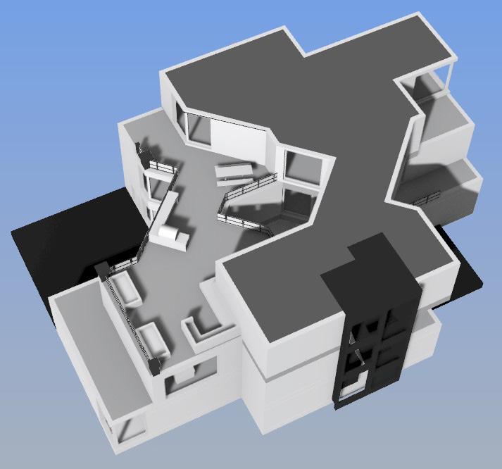 For the final project in the first semester, we were given the opportunity to approach the design of a museum through the lense of interconnecting volumetric spaces. Previously in the semester, there was a heavy emphasis on establishing particular volumes by redefining what it meant to be a volume. In this case, there is a focus on providing a communication between multiple floors and separate spaces. Furtheremore, there is an overarching movement throughout the building and it expands to the exterior, as the building immitates a cascading waterfall, visually directing the eye to the entrance. This project introduced a few challenges, managing wherein to place fire excapes, how to manage the interior circulation, and most of all, where to fit the communicative stairs.