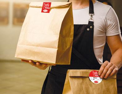 All our self-adhesive catering stickers are printed on a PVC-Free self-adhesive vinyl using a water-based latex ink which is fused to the material making the print waterproof and robust against scratches. The vinyl stickers can be recycled at the end of their use.