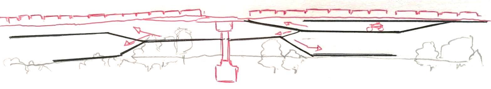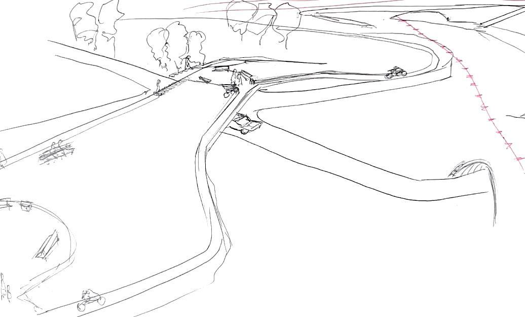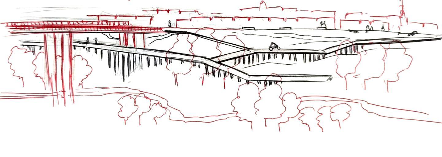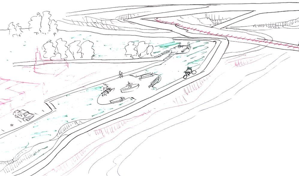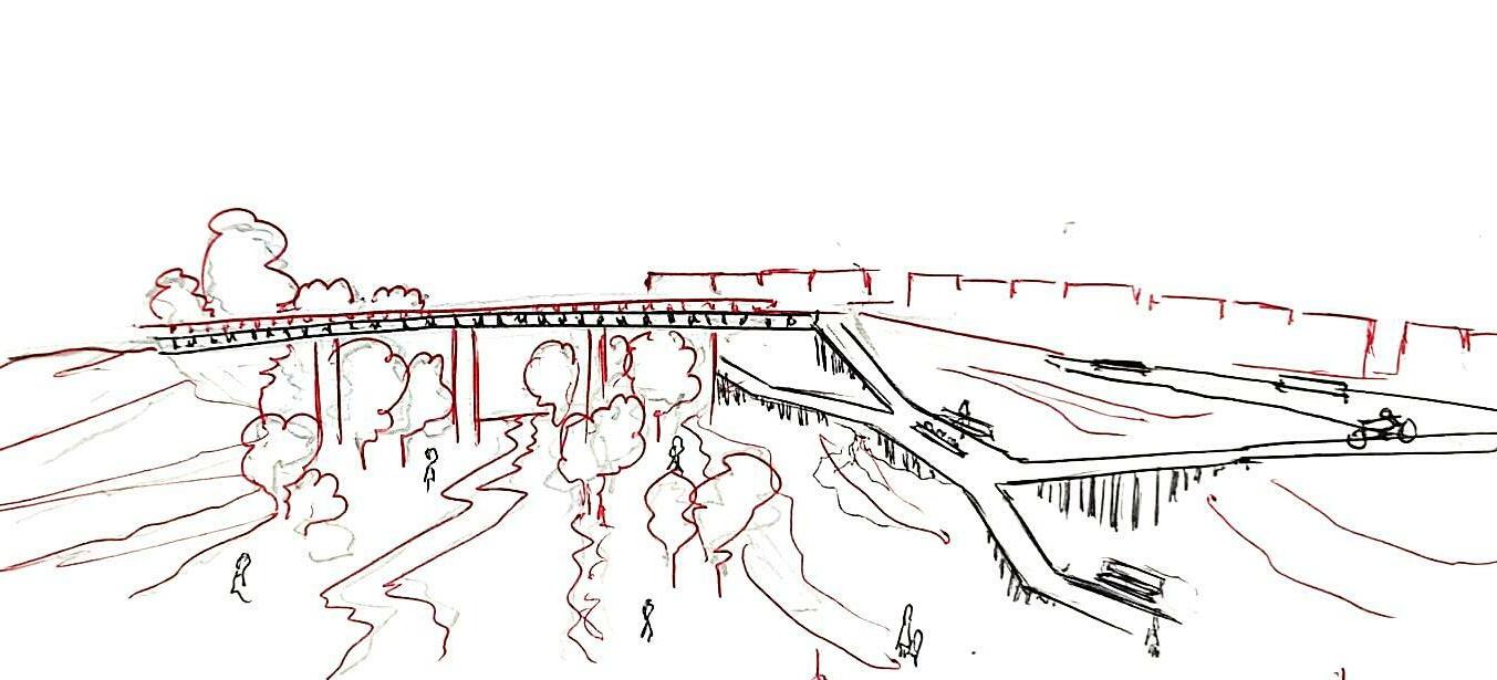 Esta intervención busca rescatar parte del plan serena que se sitúa en la ladera del Río Elqui y que formaba parte del área verde que comenzaba a abarcar desde el espejo del agua, ampliando su trayecto hacia el Este quizás llegando hasta conectar con el puente zorrilla habitar estas terrazas buscando una cercanía al borde y conquistar la quebrada para tener mayor cercanía con la naturaleza, se conectará con el parque Pedro de Valdivia a través de un puente verde que la vez tendrá la cualidad de mirador, podrán traspasar tanto peatones como transportes tales como bicicletas