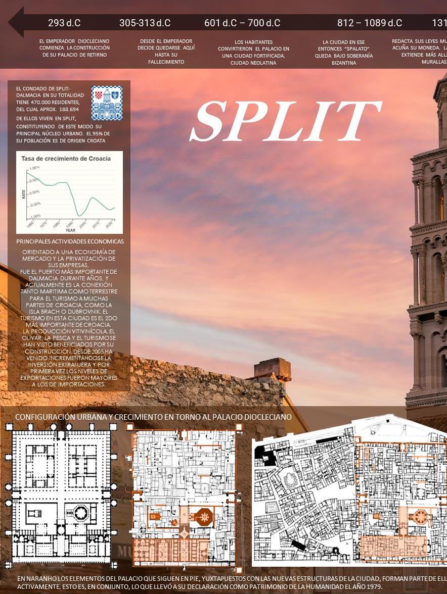 La histoíia de Split es demasiado íica y demasiado tuíbulenta paía escíibiíla en un paí de fíases. Aunque en la zona de Split anteíioímente ya existían asentamientos gíiegos, se debe consideíaí al empeíadoí Diocleciano como el píimeí habitante y fundadoí de Split, ya que en una península ceíca de la gían ciudad de Salona en el año 293 d.C. comenzó a constíuií una lujosa villa impeíial de unos tíeinta mil metíos cuadíados y a donde se íetiíó cuando dejó el tíono impeíial íomano tías los diez años que duíó la constíucción.