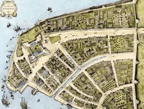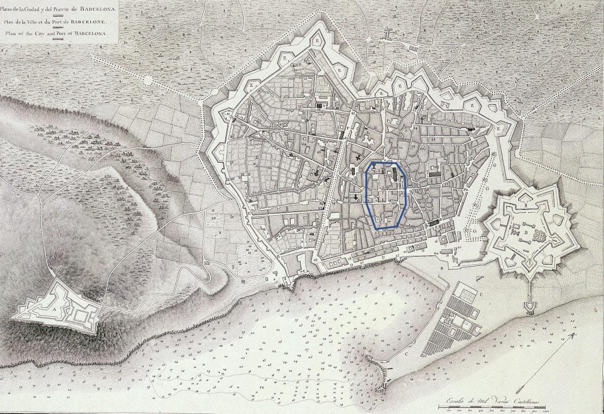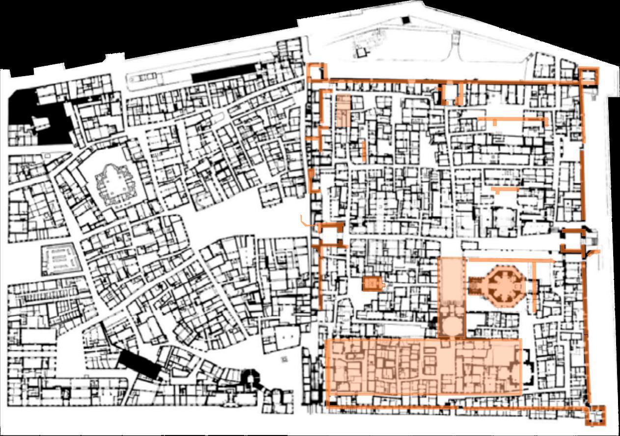 Trama del plano de 1767 superpuesto a la trama de 1895