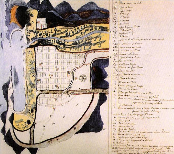 Traza ortogonal española o Damero que heredamos como espacio público. Es lo que hasta el día de hoy conocemos como el Casco fundacional