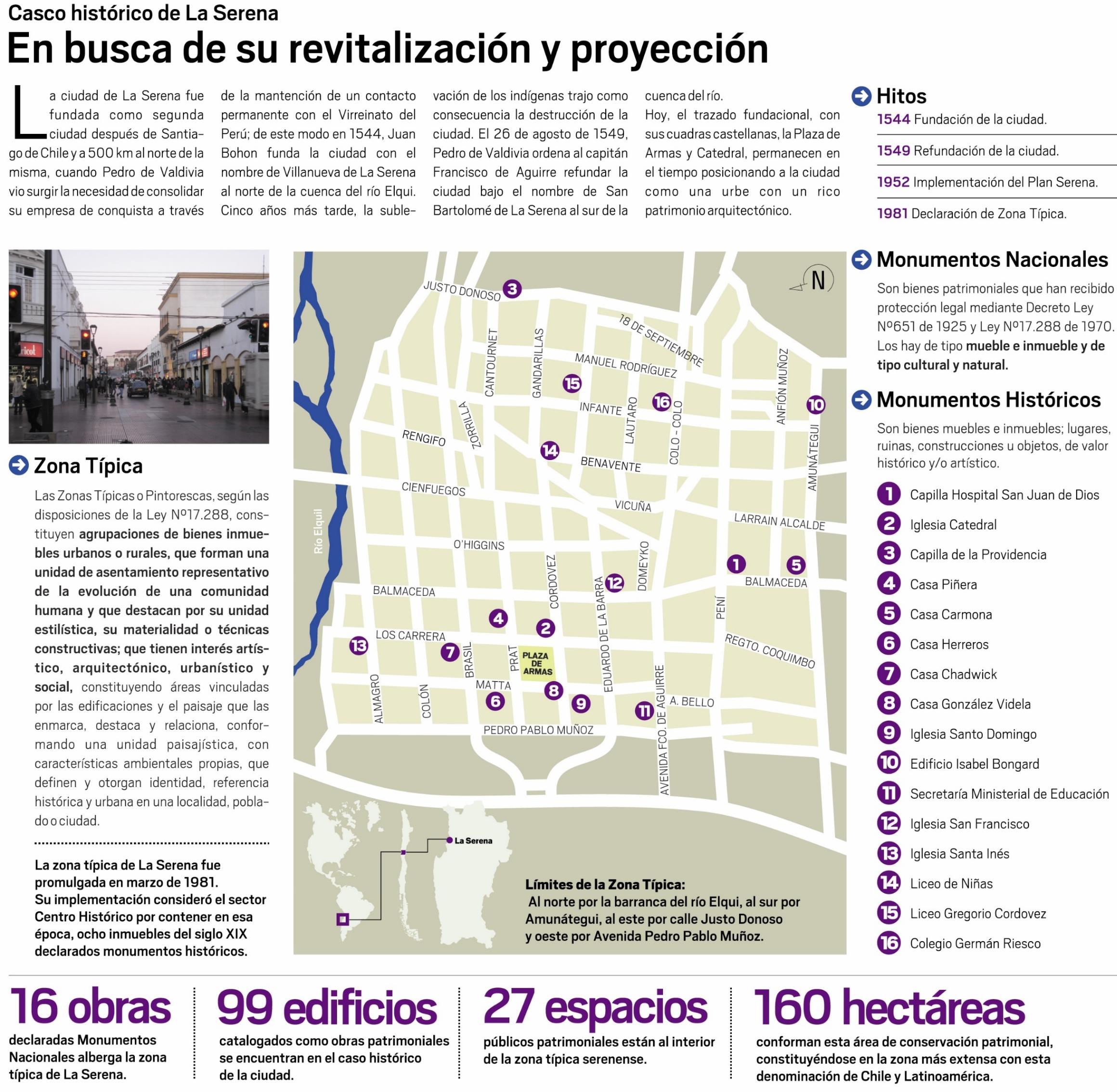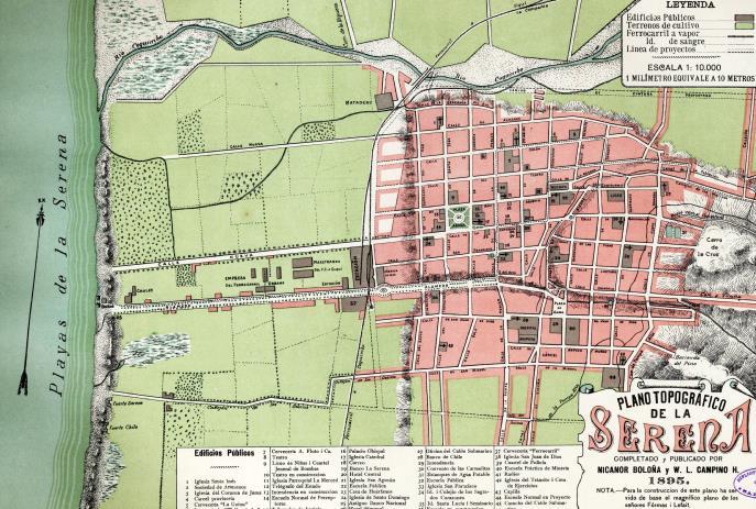 La Serena, refundada en 1549 por Francisco de Aguirre, en su origen fue un asentamiento colonial intermedio en el camino al Cuzco de no más de 48 cuadras.