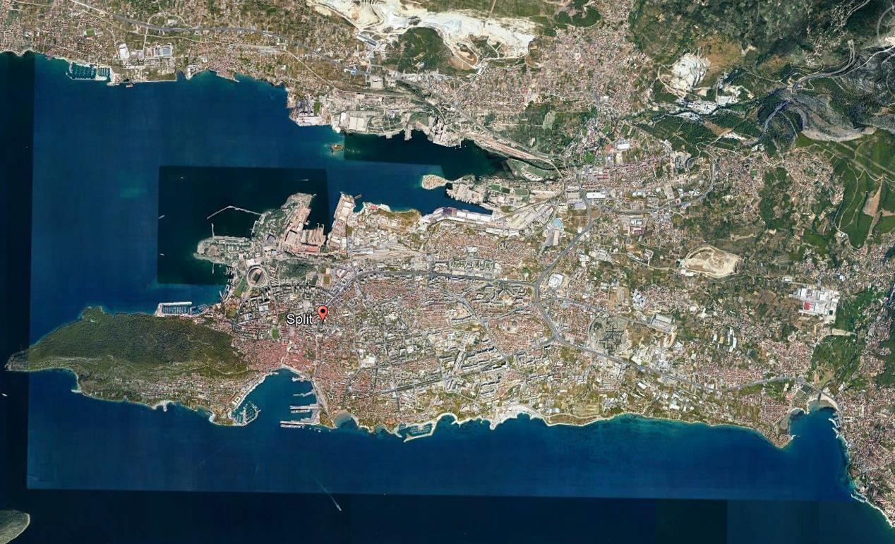 Split (Spalato en italiano), se encuentía en Dalmacia, en la costa del Adíiático, y es la segunda ciudad más gíande de Cíoacia.