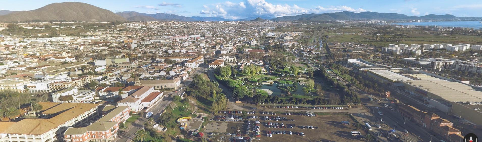El cambio corresponde a la inclinación real de la traza urbana en sentido oriente poniente. El trazado urbano de La Serena, consolidado a través del tiempo, se transforma en un importante elemento de imagen urbana de la ciudad. Entorno paisajístico en que se enmarca el casco central: Espacios públicos conformados por atrios de las iglesias, Espacios intermedios entre obras de la ciudad, Alameda Francisco de Aguirre, que se prolongaba hasta la playa, Parque Pedro de Valdivia, Parque japonés