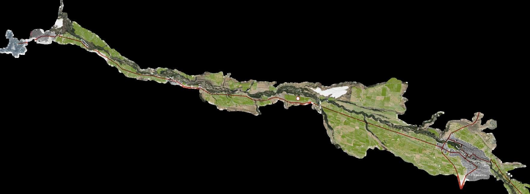 EL CURSO DEL RIO SE ANGOSTA Y ENSANCHA CONTINUAMENTE SEGÚN LA PRESENCIA DE CERROS LATERALES QUE DESVÍAN LA CUENCA DE UN LADO HACIA OTRO, Y EN ALGUNOS LUGARES FORMANDO EXTENSAS TERRAZAS FLUVIALES CUATERNARIAS