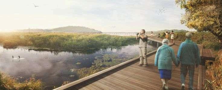 LA CIUDAD SE INTEGRA VISUAL Y FUNCIONALMENTE CON EL HUMEDAL Y EL MAR,
