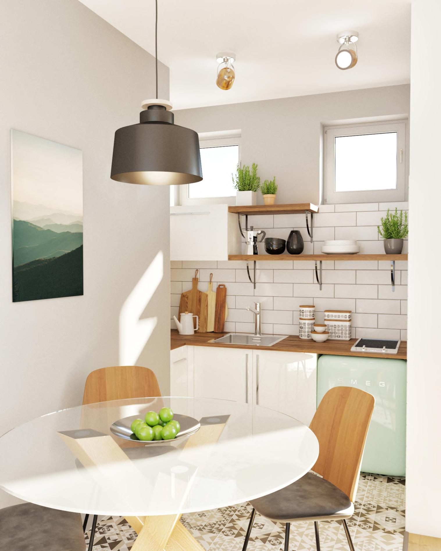 The apartment is centered around an open living area integrating the kitchen and dining space, providing functionality and convenience The aim is to evoke a sense of warmth, comfort, and harmony, contributing to a relaxing and pleasantstayinthissmallmountainretreat.