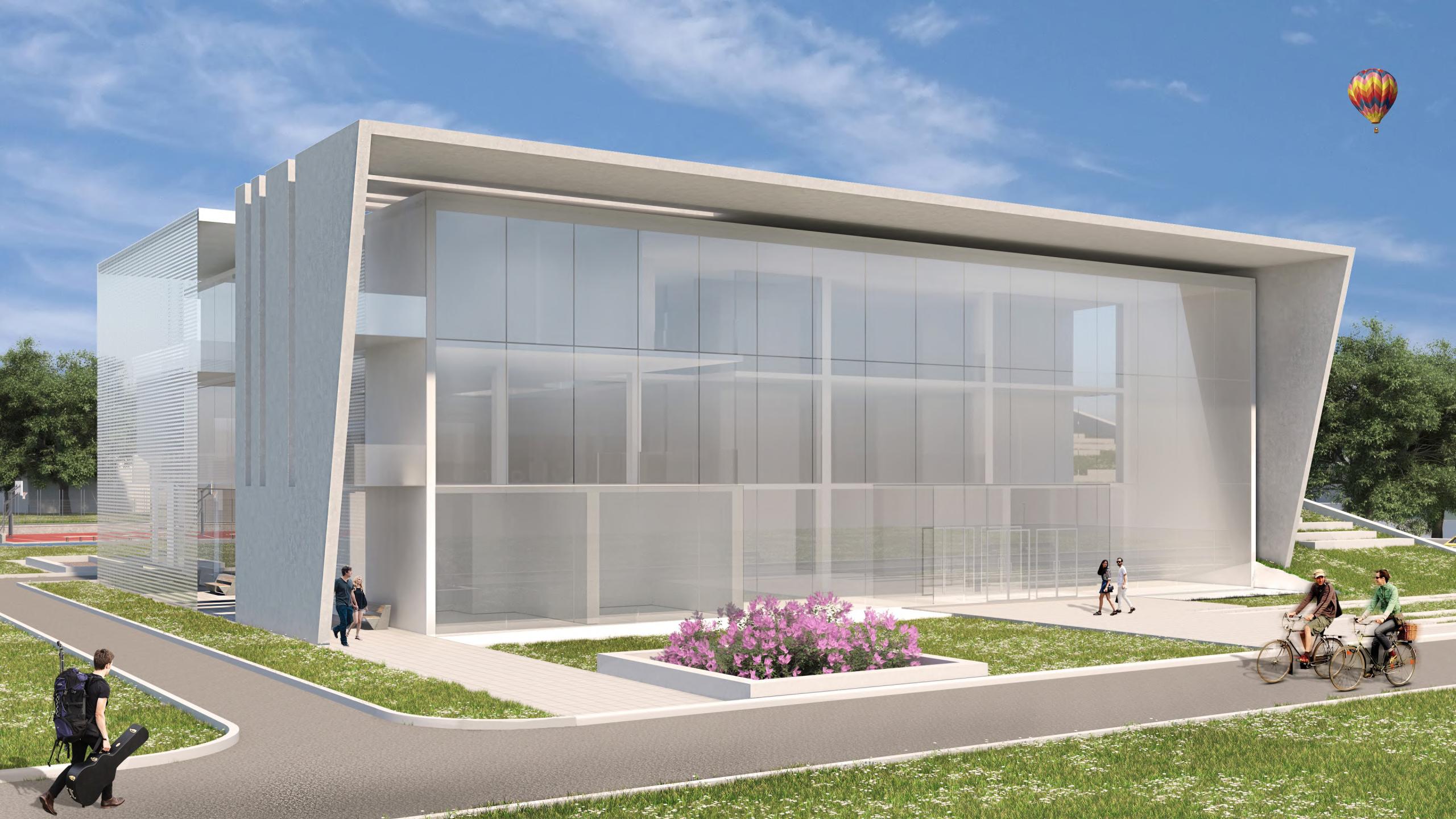 The exterior of the student center conveys a sense of welcome, openness, and transparency of its contents Vertical elements ensure visibility from various points on the campus. Maximizing transparency, promotes collaboration among the building's users and raises awareness of the activities taking placeinsidethefacility