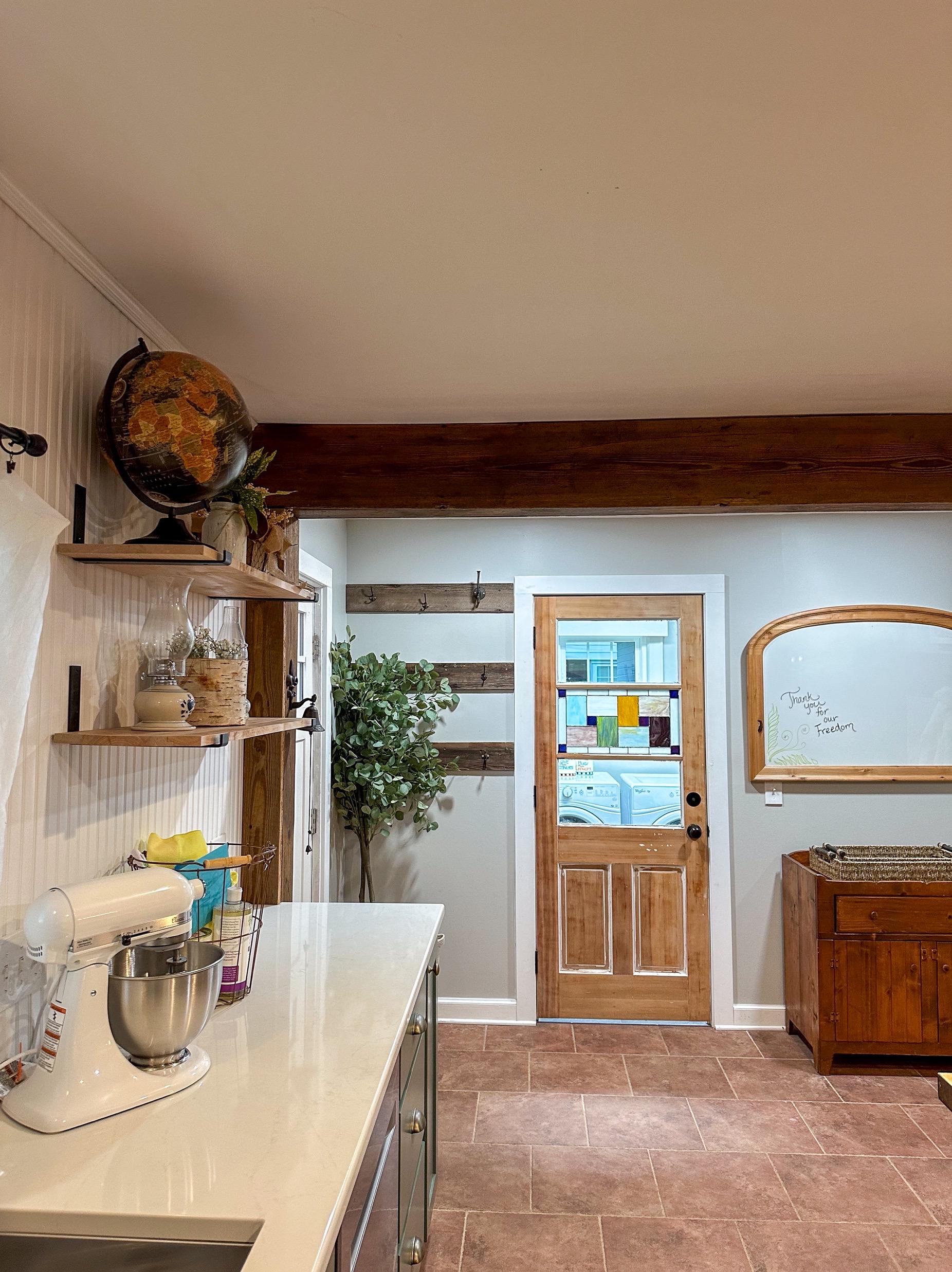 The Bowmans held a deep affection for their kitchen, a sentiment Jennifer appreciated and sought to honor in her design approach. She chose to utilize it as the cornerstone of the overall design scheme, introducing nuanced enhancements. This involved integrating state-of-the-art appliances from Midea, incorporating a new table sourced from Quality Home Furnishing, and artfully incorporating curated décor and accessories from Goodwill.