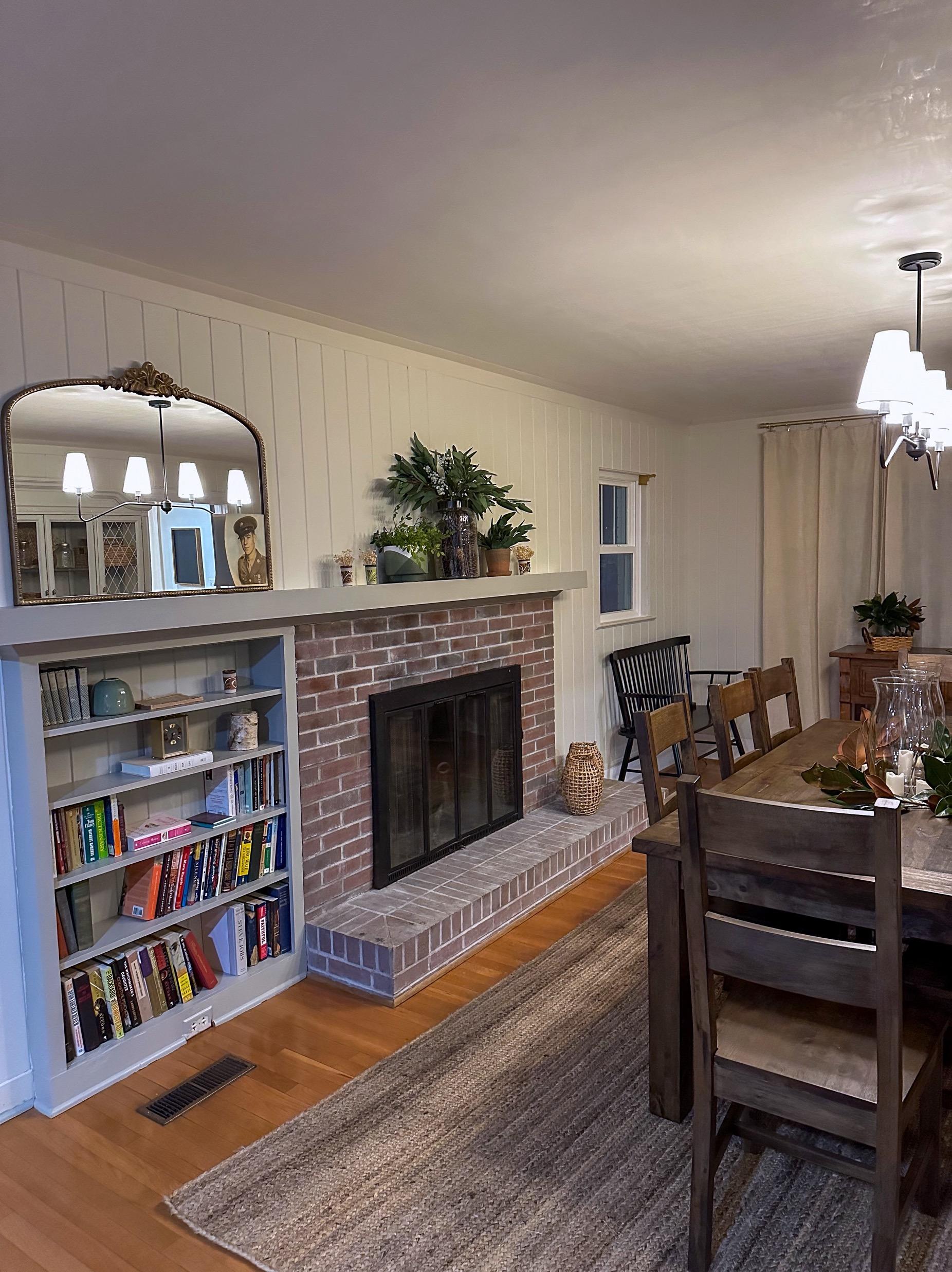 Recognizing the Bowmans' kitchen required minimal attention, Jennifer directed her efforts towards an extensive renovation of their dining room. She revitalized the ambiance by implementing a fresh coat of paint throughout the space, skillfully blending elements of both traditional and contemporary décor to achieve a harmonious synthesis of the old and the new.