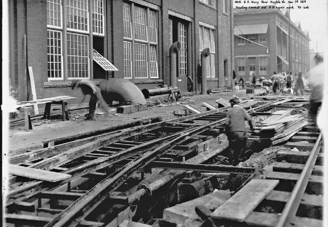 These historical photos from the NorfolkNaval Shipyard archives shows a heating conduit and railroad repairforyard laborNov.14 1914 (COURTESYPHOTOSNORFOLKNAVALSHIPYARD)