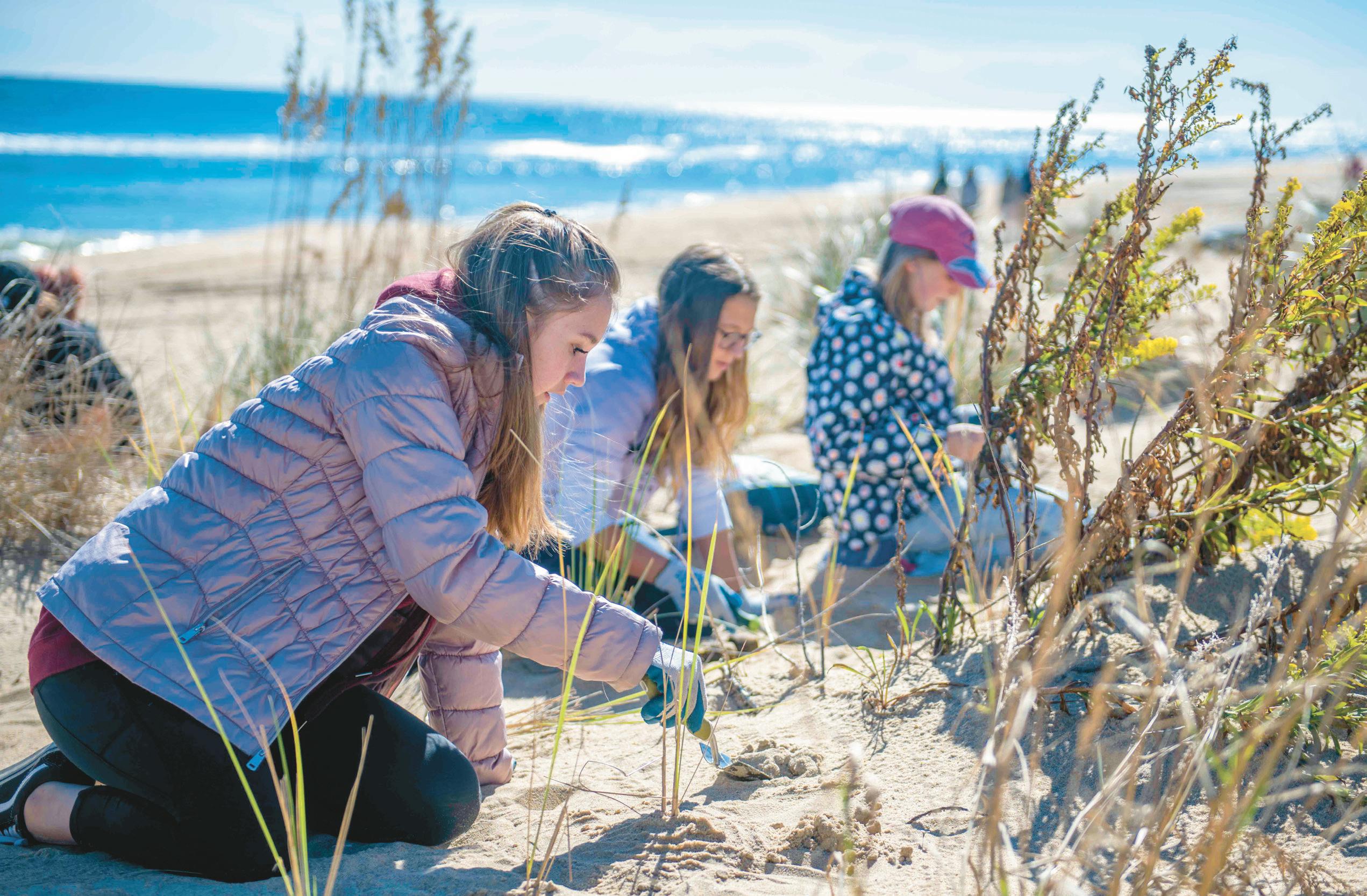 Volunteers from Pocomoke Middle School’s Surfrider Student Club plant beachgrass on Dam Neck AnnexBeach. NavalAir Station Oceana-Dam NeckAnnexhosted a sand dune stabilization event to restore critical sand dunes along the installation’s coastline.