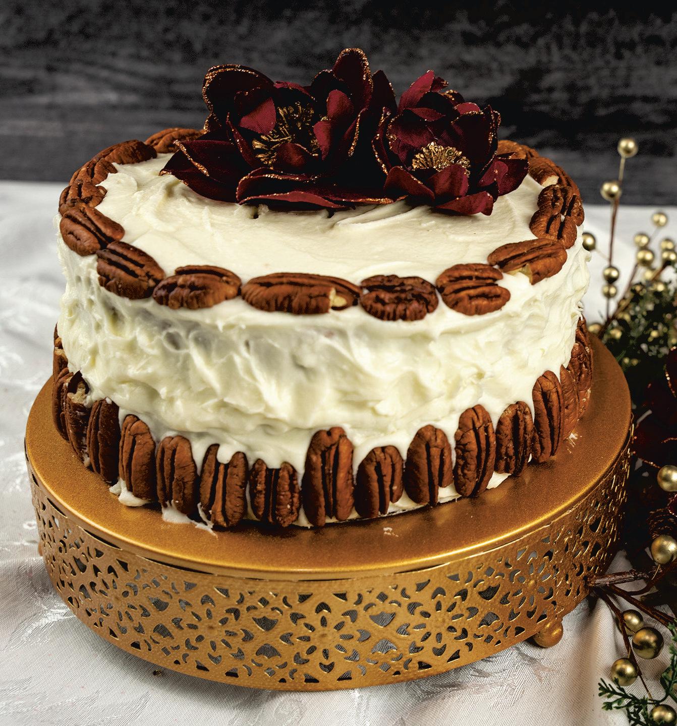 To makefrosting: In mixingbowl, mixbutter, cream cheese and heavy whipping cream. Slowly blend in powderedsugar Icecakethendecoratewithpecans,ifdesired.